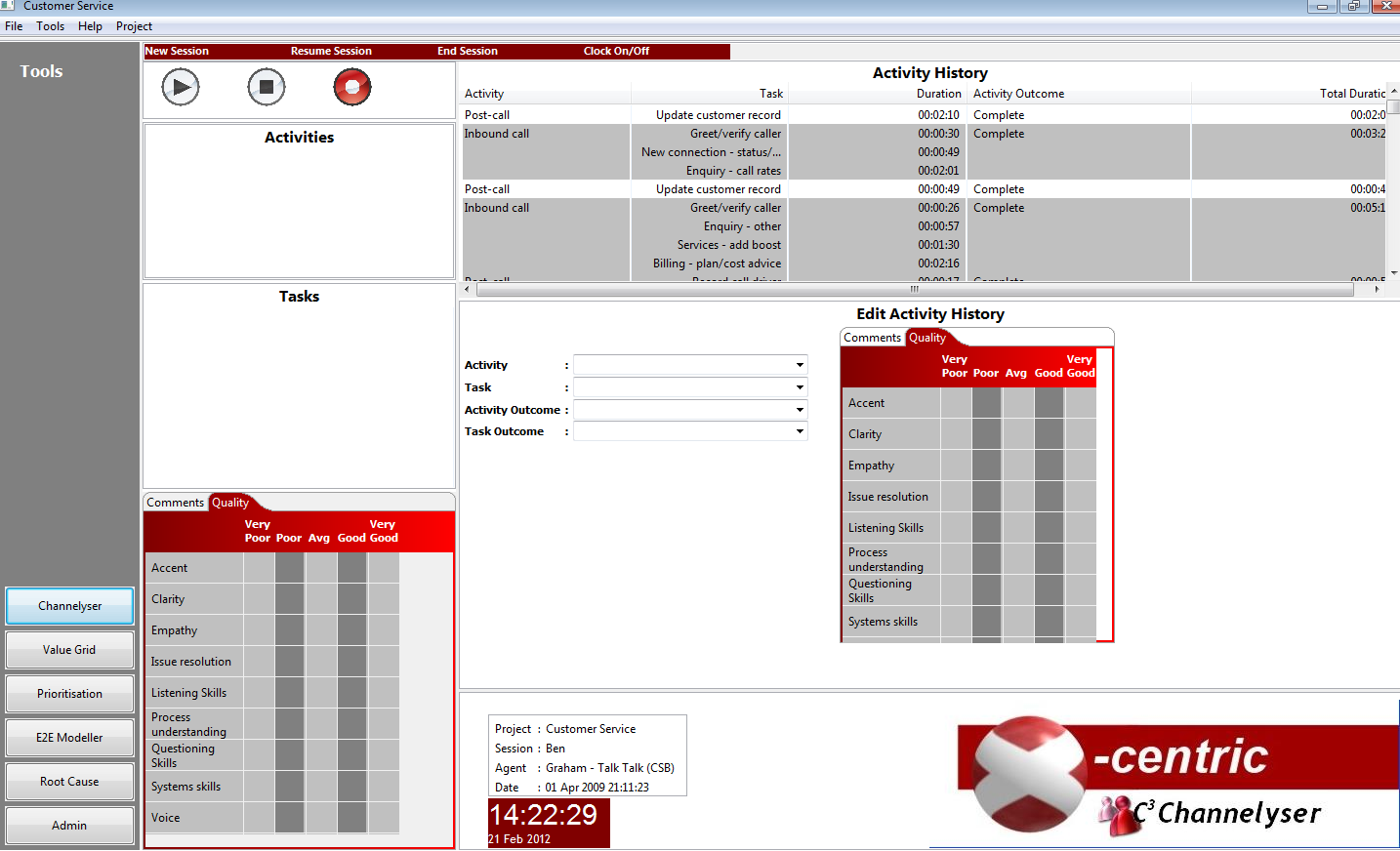 For Kinetic I wrote a data system allowing them to observe and analyse workers in call centers, which was central to their business