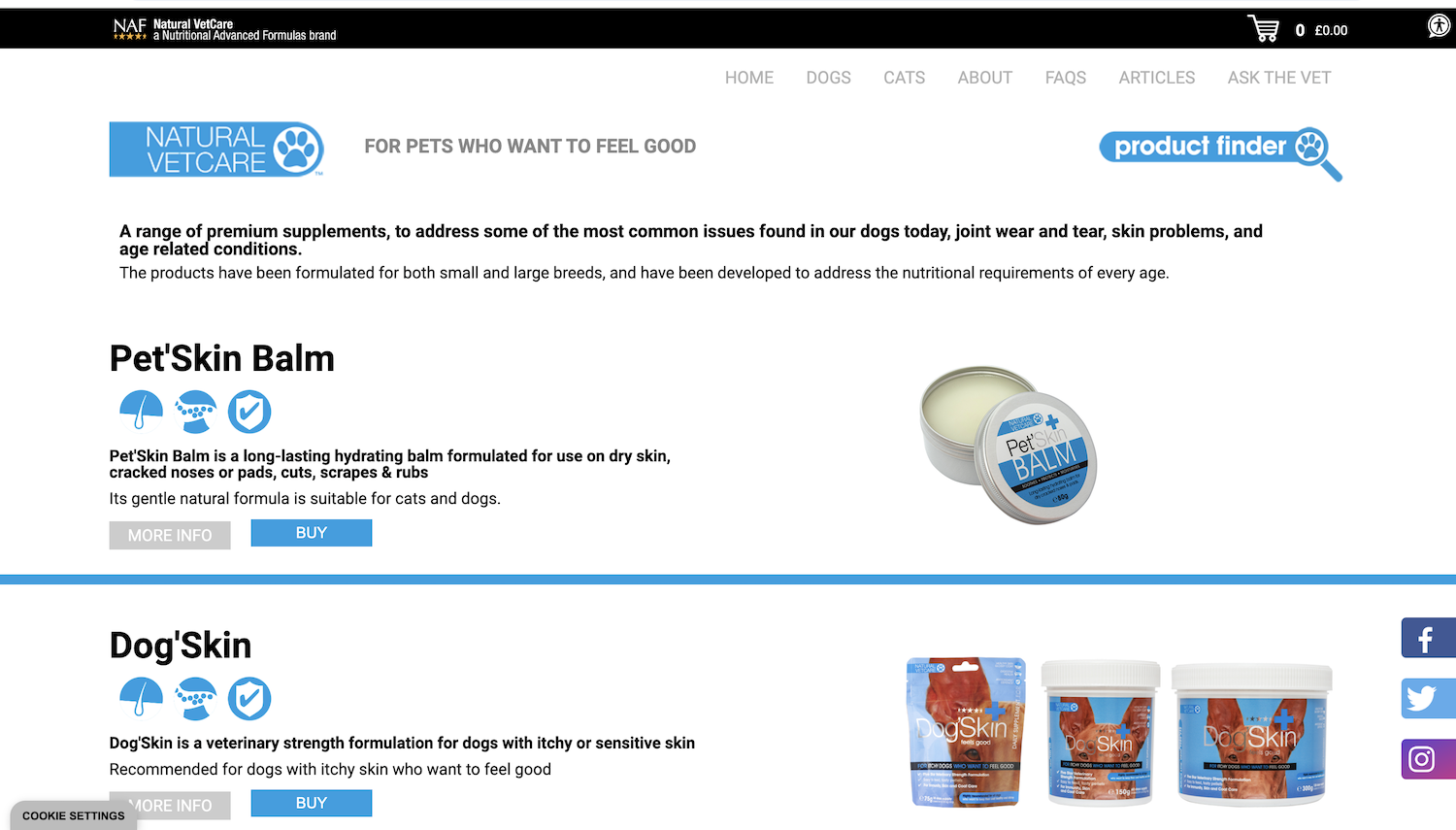 I have written and supported the NAF websites since 2009. This includes the main website and shop, multipled European sites and a site for Natural Vetcare containing products for Dogs and Cats